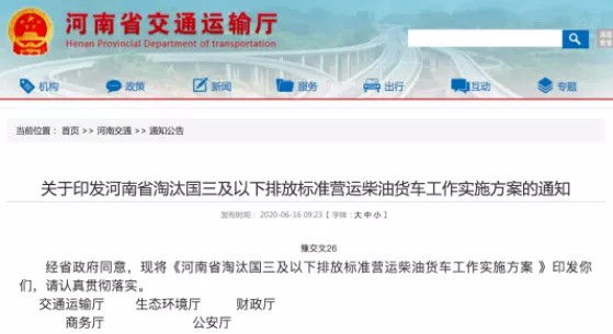 2020/06/23定了!河南:超20萬輛國(guó)三及以下中…